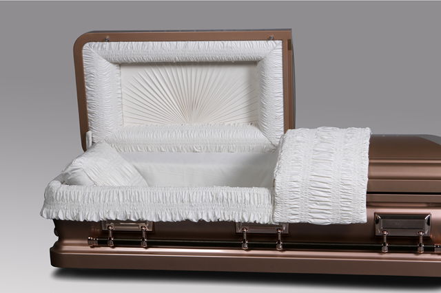 Er zijn verschillende kisten met een verscheidenheid van hardware, interieur in ons bedrijf. We hebben ook verschillende deksels opties. Nu hebben we RVS kisten, koperen kisten en stalen kist met 20ga, 18ga en 16ga.